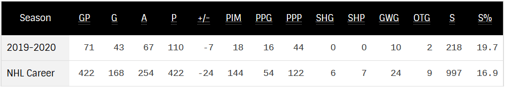 2020/21 Projection: 82 GP, 47 G, 65 A, 112 PTS
