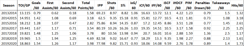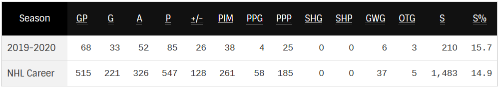 Welcome back for the seventh installment of my series on the top NHL fantasy hockey players of 2019/20, where I dive deep into how they performed this year and try to project what their 2020/21 season might look like. You can go back and read my previous article on Brad Marchand here. Let’s get the basics out of the way: