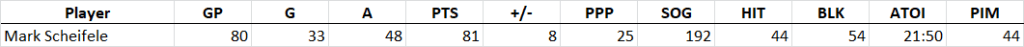 Mark Scheifele flies in at #17 on my list as one of the most consistent point-producers of the last four seasons (1.04, 1.00, 1.02, & 1.03 PPG in those four seasons). His 2019/20 17% shooting percentage is actually the lowest of those four seasons but he continued to play at a high level, spending most of the year feeding Kyle Connor and Patrik Laine. Scheifele’s chances for stats are just as consistent as his point production, and it’s impossible to predict anything but more of the same from him in 2020/21.