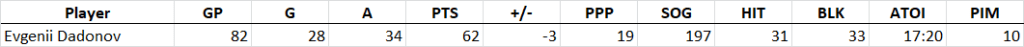 Evgenii Dadonov comes in at #14 for me after a disappointing season that saw him register just 47 points in 65 games after two straight seasons producing at a 70-point pace. The good news is that Dadonov’s place on Florida’s top line alongside Aleksander Barkov and Jonathan Huberdeau seems secure, but the bad news is that Florida used that line significantly less often in 2019/20, resulting in a ice time drop of 1:16/game for Dadonov. I think he’ll get a small portion of that ice time back next year, especially after seeing how poorly the Panthers’ season went, but it doesn’t seem likely that he’ll see 18 and a half minutes per game again anytime soon. He also posted a career-low 52.8% IPP while his on-ice chances for stats actually improved over his 70-point 2019/20 campaign. Taking these factors into account I’m predicting a return to form for Dadonov in 2020/21, albeit at a slightly reduced point total due to the lack of ice time.