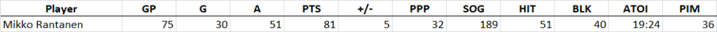 Mikko Rantanen starts off my top 5 as the man lucky enough to play with Nathan Mackinnon on a consistent basis. In all seriousness, Rantanen is a great player in his own right, averaging well over a PPG in his last three seasons. Injury concerns exist with Rantanen, who missed 8 games in 2018/19 and over a third of the shortened 2019/20 season. But the talent and opportunity is undeniable, and the potential for injury is the only negative one might be able to find with him. Rantanen actually improved both his individual and on-ice scoring chance for rates in his abbreviated 2019/20 campaign, but was also deployed about one minute less per game. He maintains a 16%+ shooting percentage so while the 17.8% mark he posted last year was high, it’s not an extreme outlier. All in all, there’s no warts to be found in Rantanen’s game; this is a bankable PPG player at a tough position to fill in fantasy hockey.