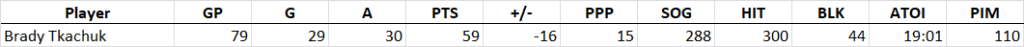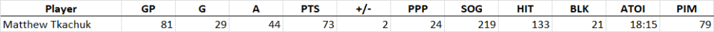 Brady Tkachuk starts us off at #15 in my rankings, and is a player whose value will vary tremendously based on your league’s stat categories: if your league tracks shots, hits, or PIM, Tkachuk provides in each of those categories in spades. If you’re in need of all three, Tkachuk might be a top 5 winger on your board. Tkachuk provides an enticing individual chances for profile, ranking among league leaders in individual scoring chance and high danger chance for rates. Unfortunately all those chances haven’t resulted in a ton of goals for the youngest Tkachuk, even as his ice time took a huge leap in 2019/20 from 16 minutes to nearly 19. I expect that jump to come for Tkachuk in season #3, as nearly every underlying metric pointed upward for him this season but the points didn’t. While Tkachuk certainly lacks a #1 center which holds him back, this is a player good enough to flirt with 60 points without help from top-flight linemates.