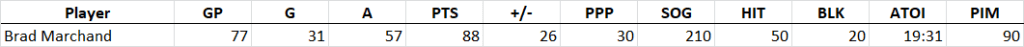 Brad Marchand comes in at #3 for me after yet another terrific season skating on Boston’s incredible top line with David Pastrnak and Patrice Bergeron. Pastrnak’s ascension to Rocket Richard Trophy candidate and top-5 point producer was the storyline in Boston all year, but Marchand should certainly get his fair share of praise for his contributions to Pastrnak’s unbelievable season. Marchand did see a decrease in individual chances for which is concerning as he progresses further into his 30s. While I still expect Marchand to get close to if not exceed 90 points in 2020/21, we need to acknowledge the fact that this is his age-32 season and while some players keep their legs longer than others, Father Time comes for all eventually. If I had to put money on it I would say the best is already in the past for Marchand, but given that “not his best” is still a PPG pace, I’ll take it. If you want to read more about Marchand, you can find my full article on him here.
