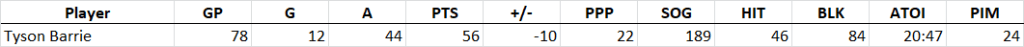 Tyson Barrie occupies my #13 spot, another offensively talented defenseman who had a subpar 2019/20 season by his standards. Barrie was misused early in the season by former Leafs’ bench boss Mike Babcock, but rebounded under Sheldon Keefe to produce at the level we are accustomed to seeing from him. As a UFA it remains to be seen where Barrie will sign, but it can be safely assumed that whoever pays him will be looking for a PP1 quarterback to skate 20-21 minutes and maybe even a little more. Barrie has two major signs for positive regression: a 3% shooting percentage in 2019/20 after averaging over 7% across the previous two seasons, and a 42% IPP after back to back seasons of 54%-plus. Barrie’s individual chances for stats took a small hit but his on-ice underlying stats were largely unchanged from his Colorado days and I fully expect to see him post a bounce-back season next year regardless of landing spot.