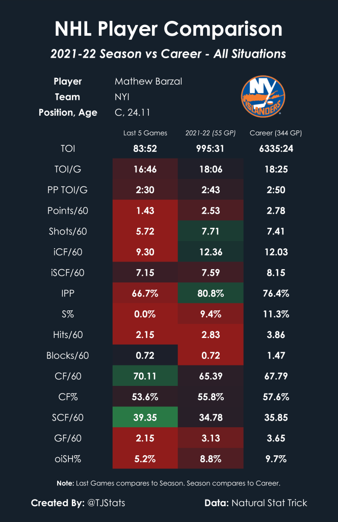 Hello everyone and welcome in for another article. This is the twenty-second installment of a weekly article I’ve been writing all season long in which I try to determine the truth about puzzling players. I pull suggestions for which players to write about for these articles from the Apples & Ginos community on Discord and the Apples & Ginos Patreon members. Be sure you check out those spots to catch up with me and I would be more than happy to answer any questions you have about Mathew Barzal, Brock Nelson, or any other New York Islander forwards (just please respect my privacy while I mourn Oliver Wahlstrom’s lost season). Let’s get it!