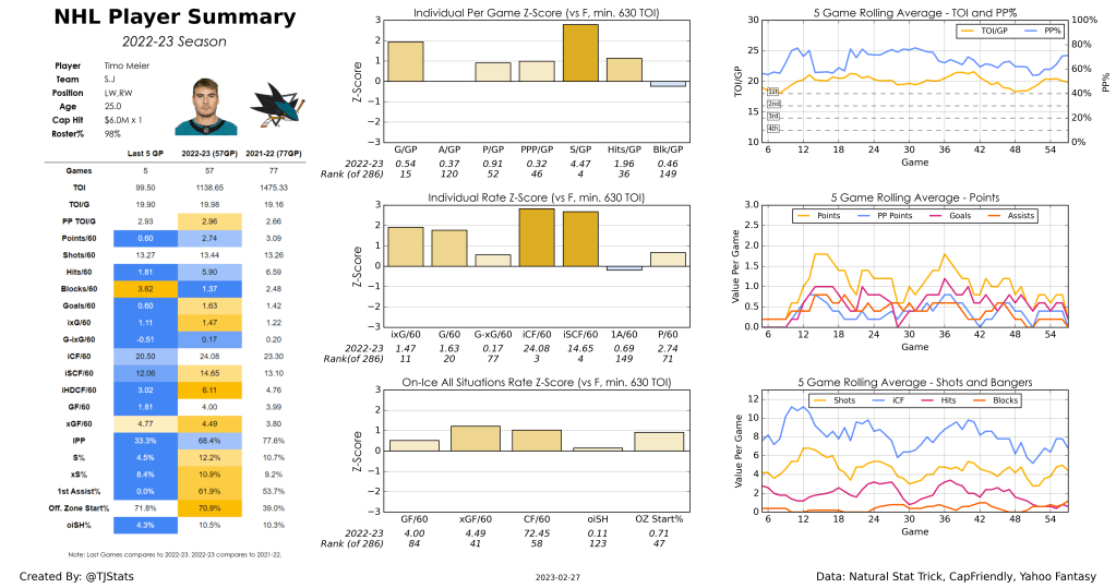 Hello everyone and welcome in for another article. This is the ninteenth instalment of a weekly article I’ll be writing all season long in which I try to determine the truth about puzzling players. I pull suggestions for which players to write about for these articles from the Apples & Ginos community on Discord and the Apples & Ginos Patreon members. Be sure you check out those spots to catch up with me and I would be more than happy to answer any questions you have about Timo Meier, Auston Matthews, or any other elite scoring chance producers across the league. Let’s get it!