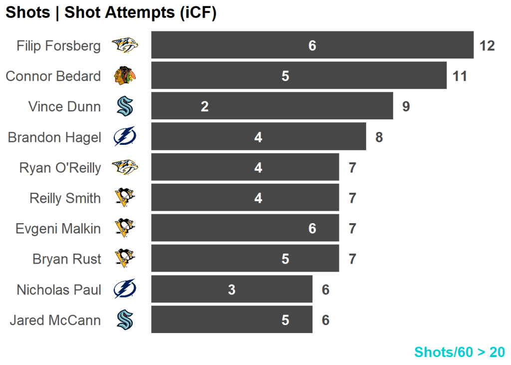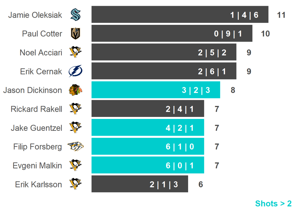 All skaters with 3+ Shots or 3+ Scoring Chances