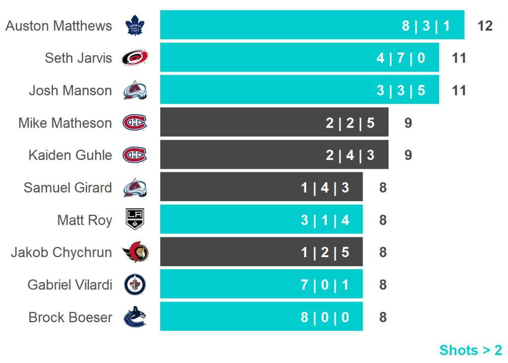 All skaters with 3+ Shots or 3+ Scoring Chances
