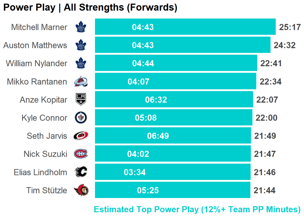 | Michael Bunting | Carolina Hurricanes | 4 | 12.21 | 4 | 0.80 |