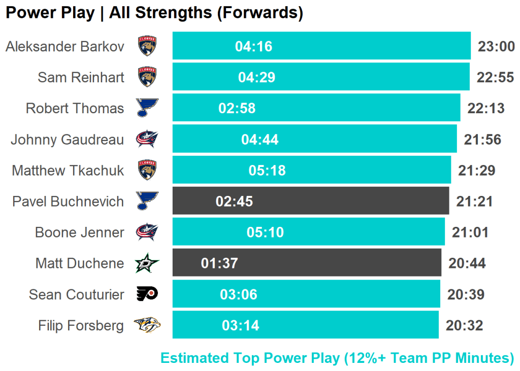| Matthew Tkachuk | Florida Panthers | 10 | 27.93 | 10 | 0.98 |