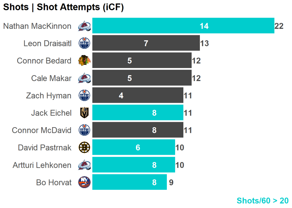 All skaters with 3+ Shots or 3+ Scoring Chances