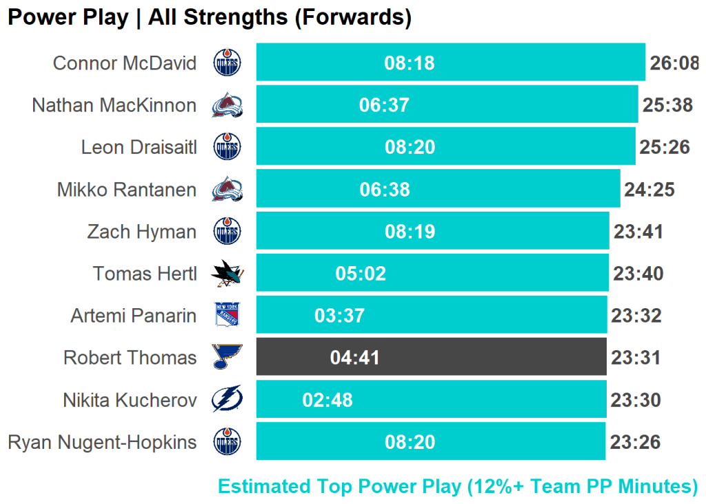 | Robert Thomas | St. Louis Blues | 1 | 2.55 | 4 | 0.29 |