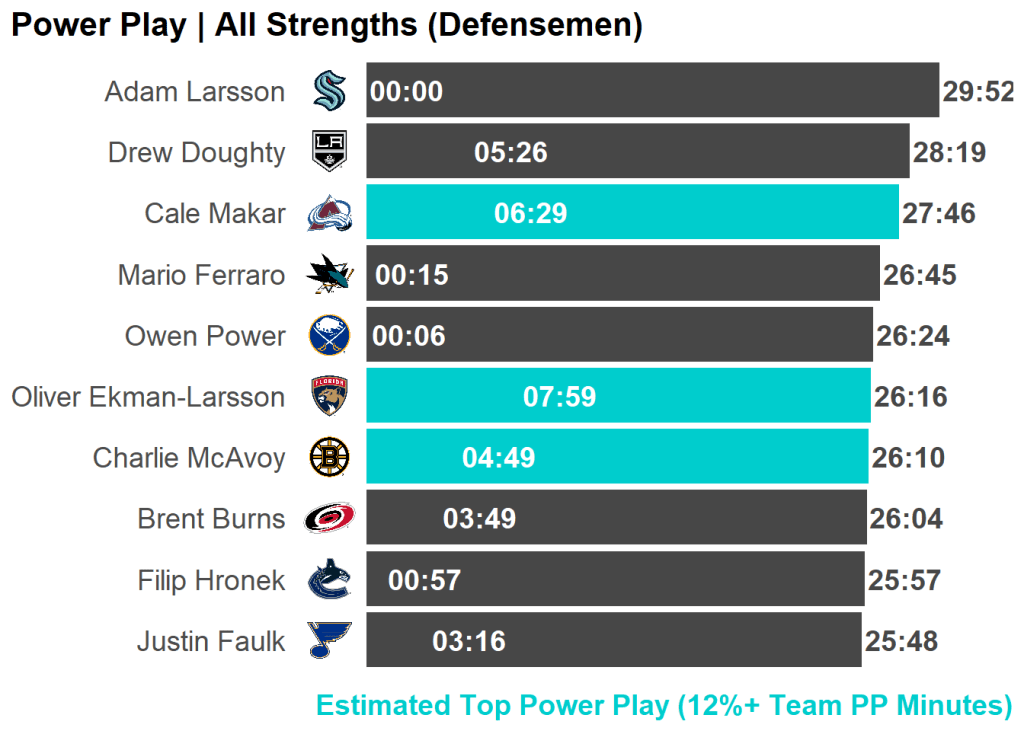 | Adam Larsson | Seattle Kraken | 3 | 6.03 | 2 | 0.18 |