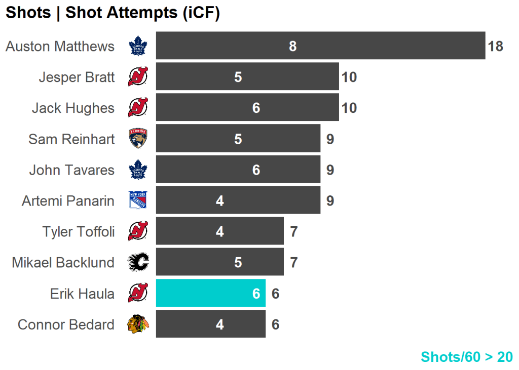 All skaters with 3+ Shots or 3+ Scoring Chances