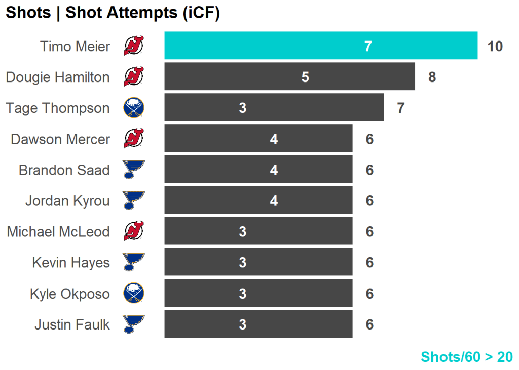 All skaters with 3+ Shots or 3+ Scoring Chances