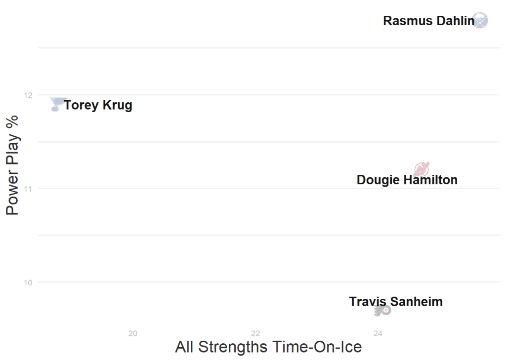 | Dougie Hamilton | New Jersey Devils | 01:07 | 11.2 | 6.5 | 4.6 |