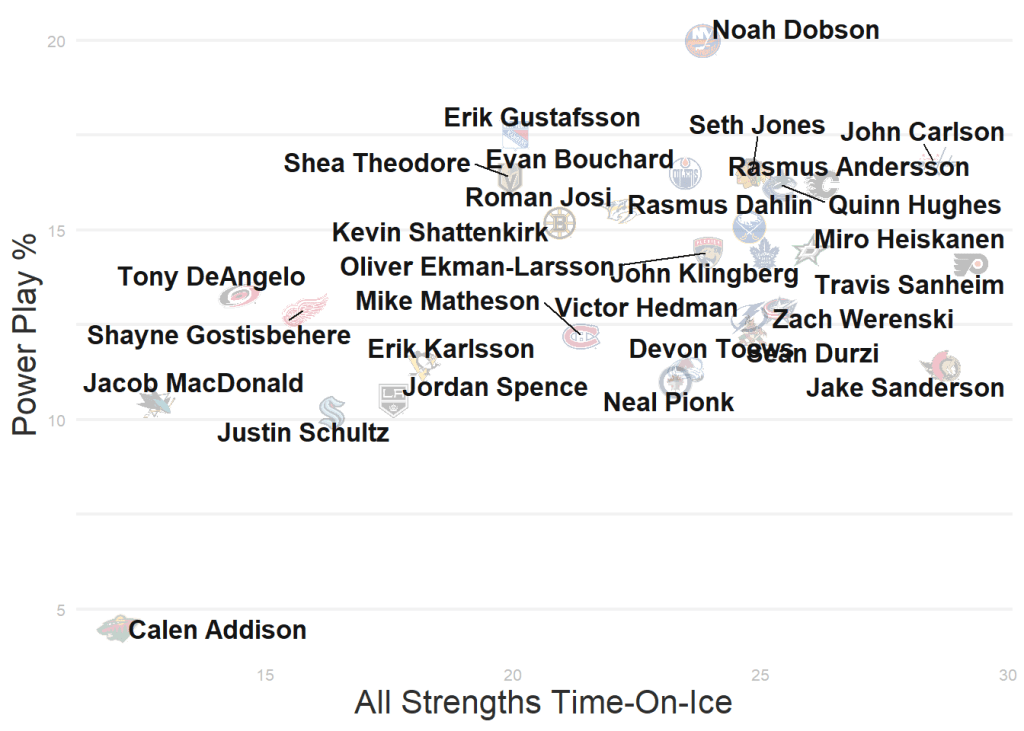 | Calen Addison | Minnesota Wild | 3 | 14.96 | 1 | 0.07 |