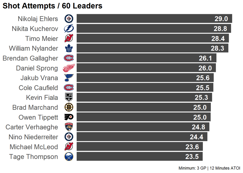 | Brock Boeser | Vancouver Canucks | 3 | 4 | 1.33 |