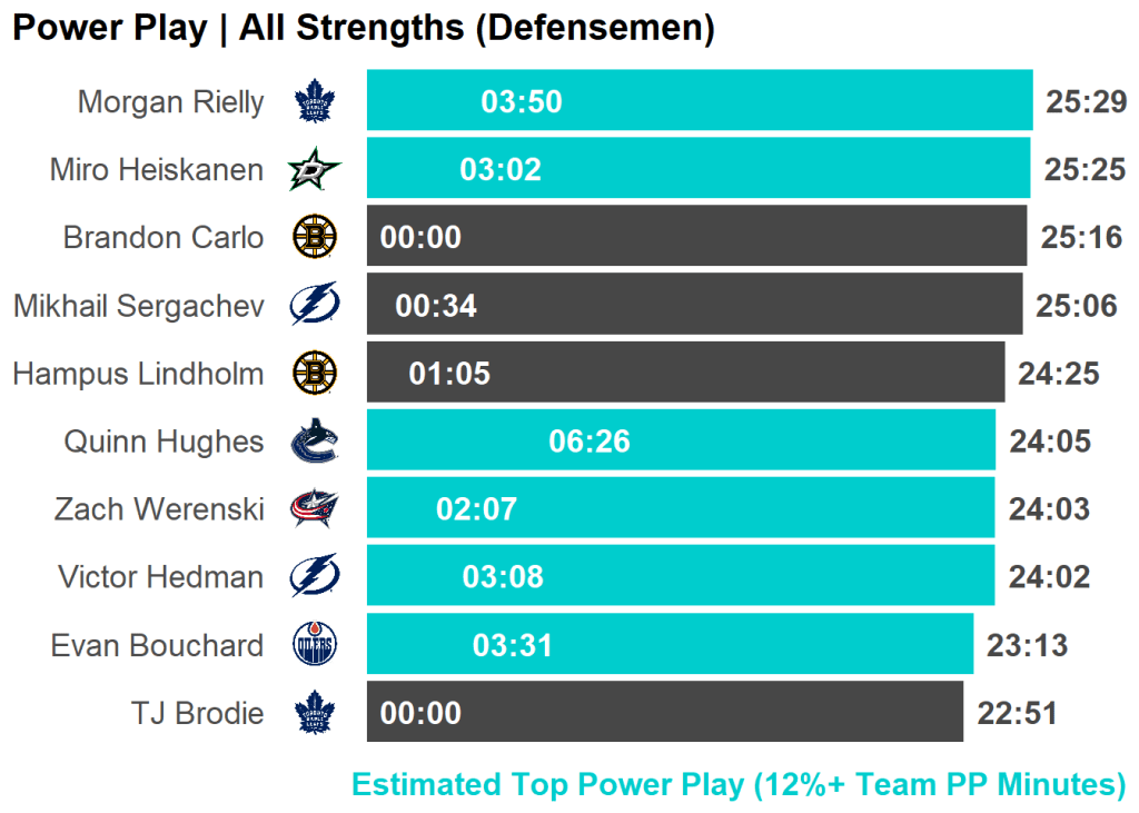 | Morgan Rielly | Toronto Maple Leafs | 03:50 | 13.2 | 8.6 | 4.6 |