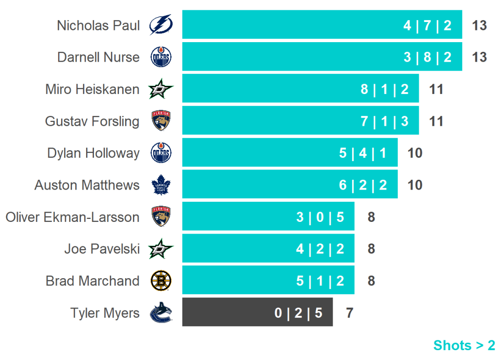 All skaters with 3+ Shots or 3+ Scoring Chances