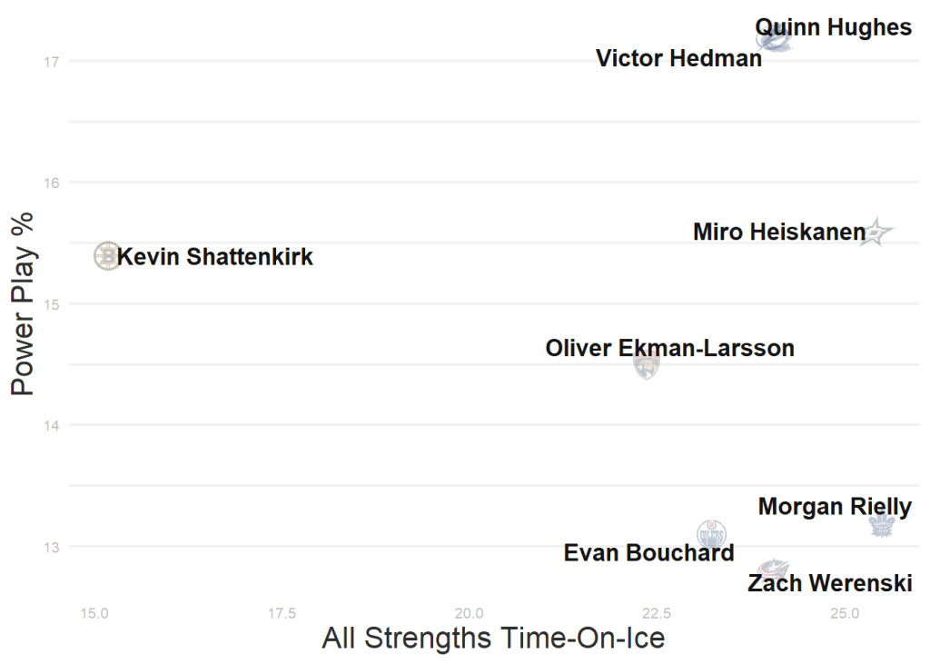 | John Klingberg | Toronto Maple Leafs | 02:01 | 6.9 | 11.5 | -4.5 |