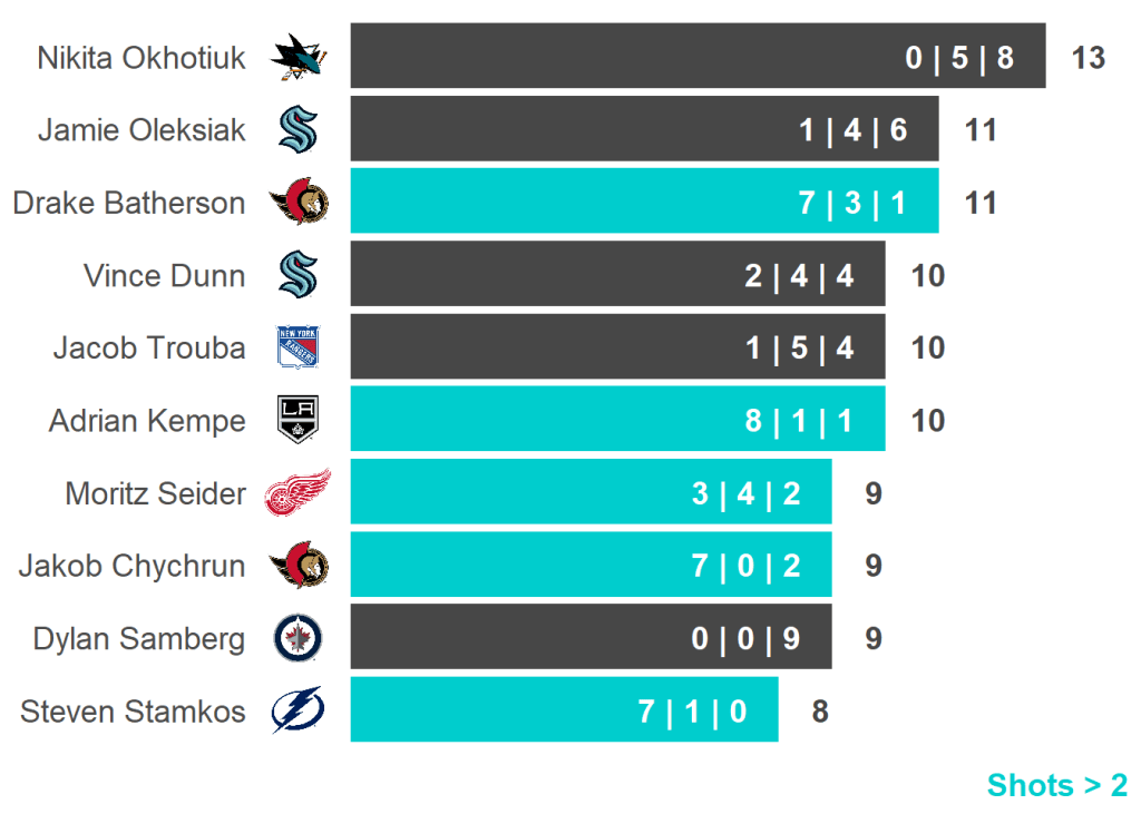All skaters with 3+ Shots or 3+ Scoring Chances