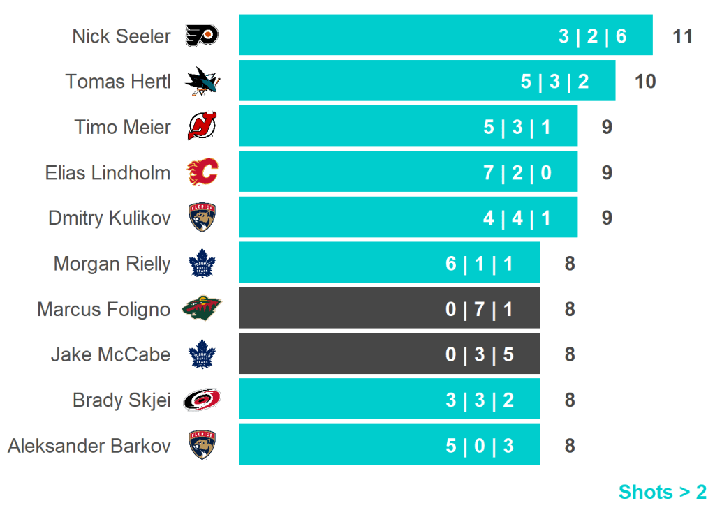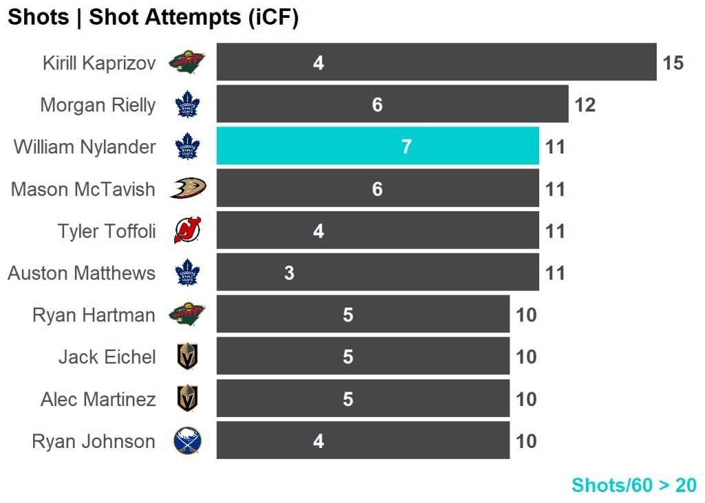 All skaters with 3+ Shots or 3+ Scoring Chances