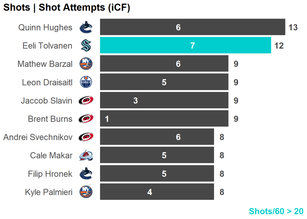 All skaters with 3+ Shots or 3+ Scoring Chances