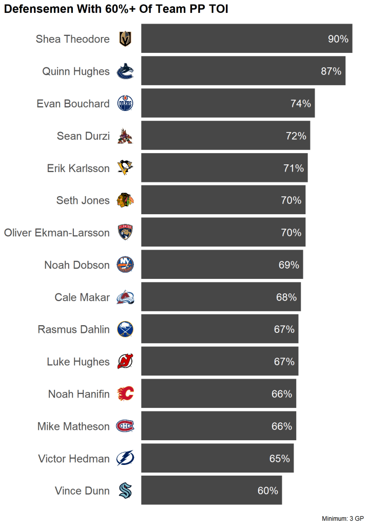| Shea Theodore | Vegas Golden Knights | 4 | 6 | 1.50 |
