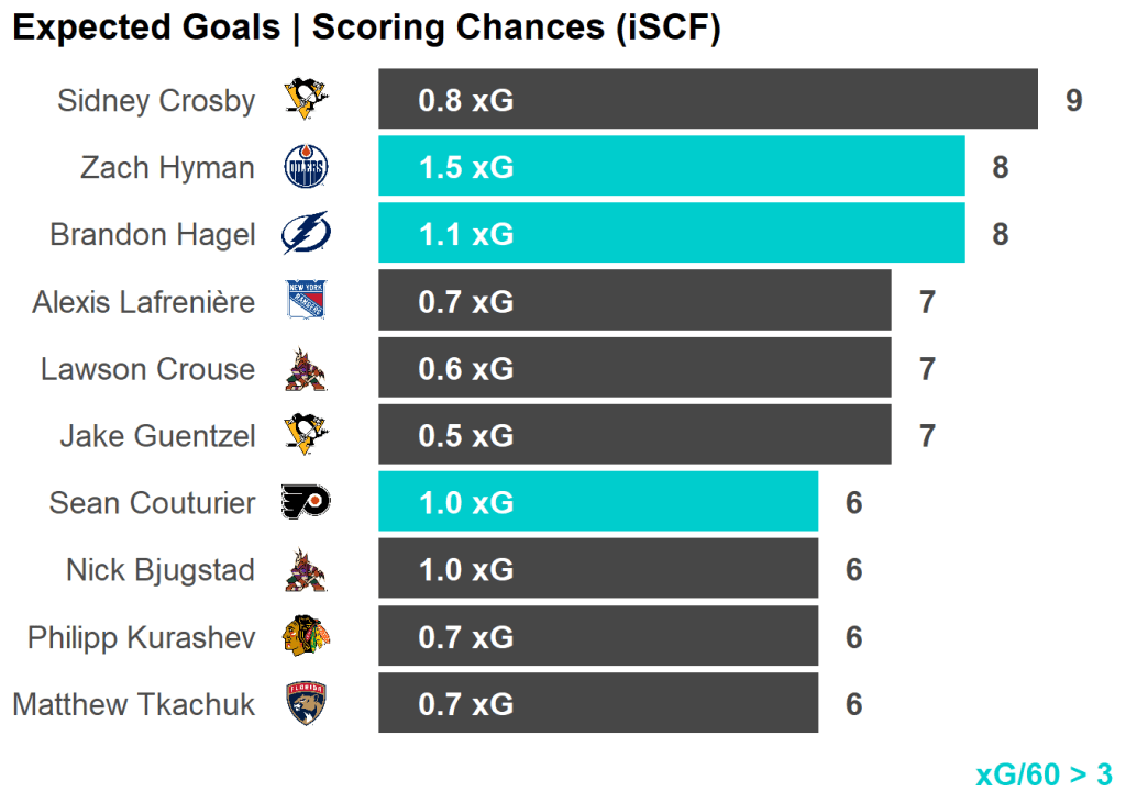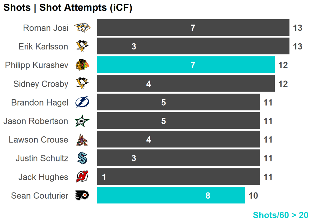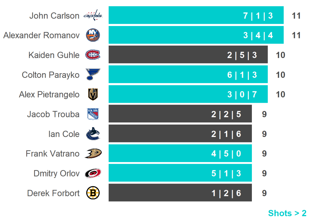 All skaters with 3+ Shots or 3+ Scoring Chances