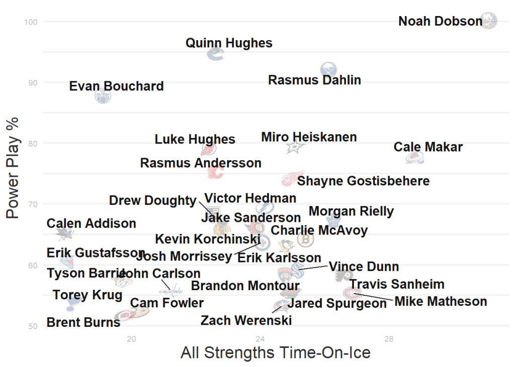 | Cale Makar | Colorado Avalanche | 2 | 4.17 | 4 | 0.28 |