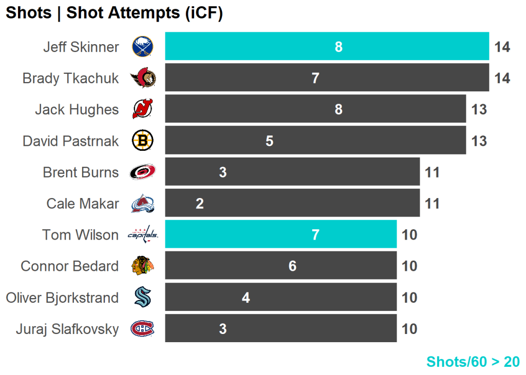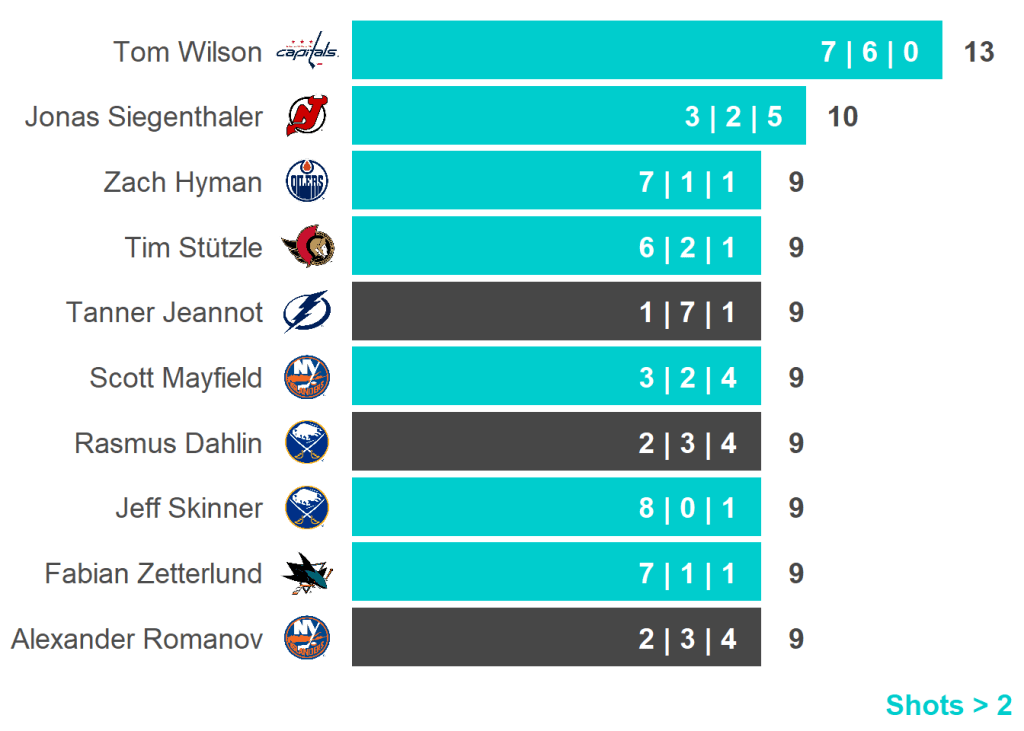 All skaters with 3+ Shots or 3+ Scoring Chances