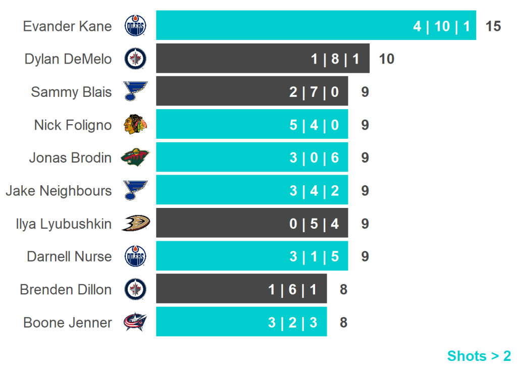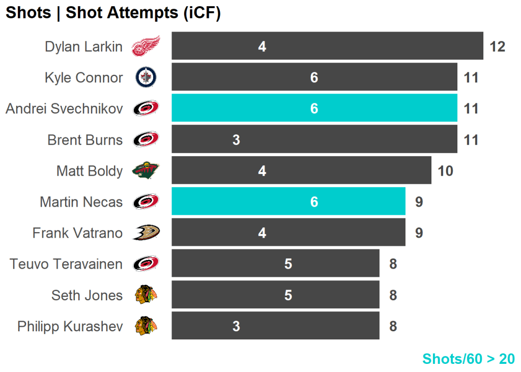 All skaters with 3+ Shots or 3+ Scoring Chances