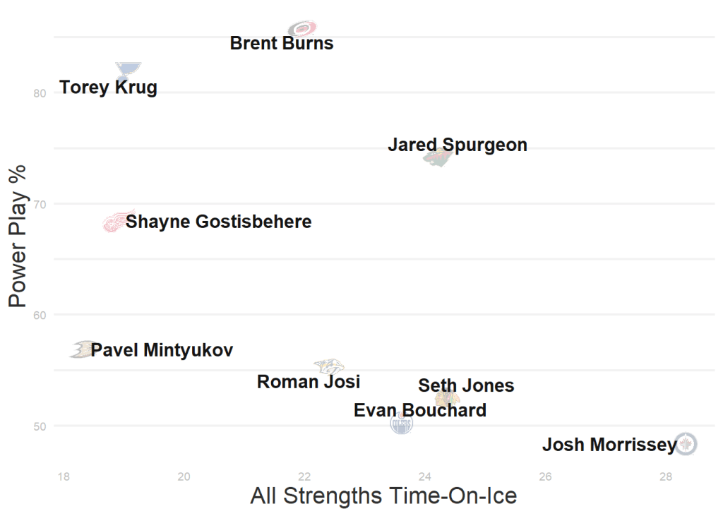 | Roman Josi | Nashville Predators | 4 | 10.71 | 3 | 0.25 |