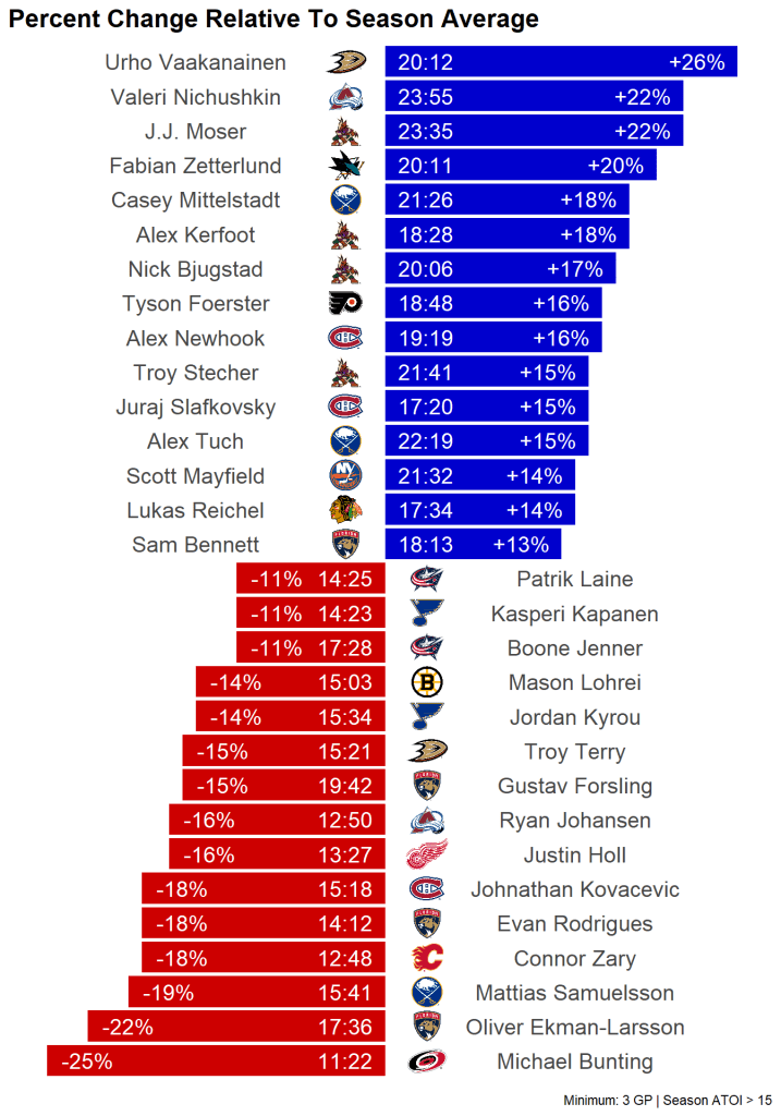 | Brandon Saad | St. Louis Blues | 3 | 4 | 1.33 |