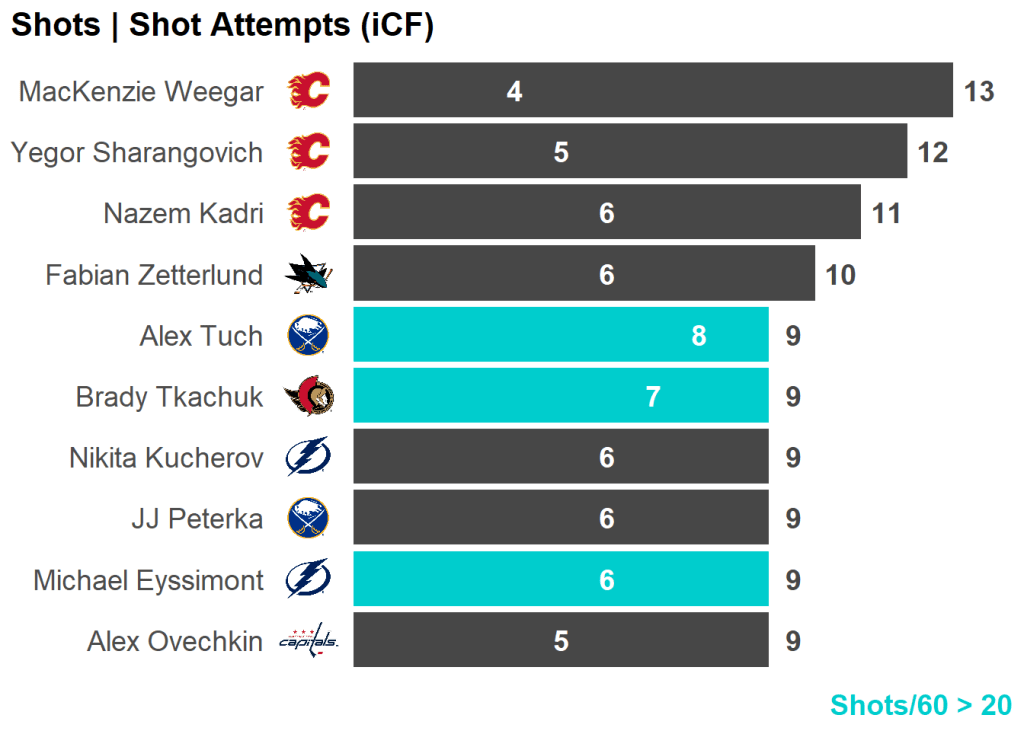 All skaters with 3+ Shots or 3+ Scoring Chances