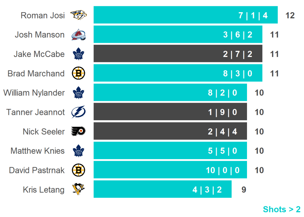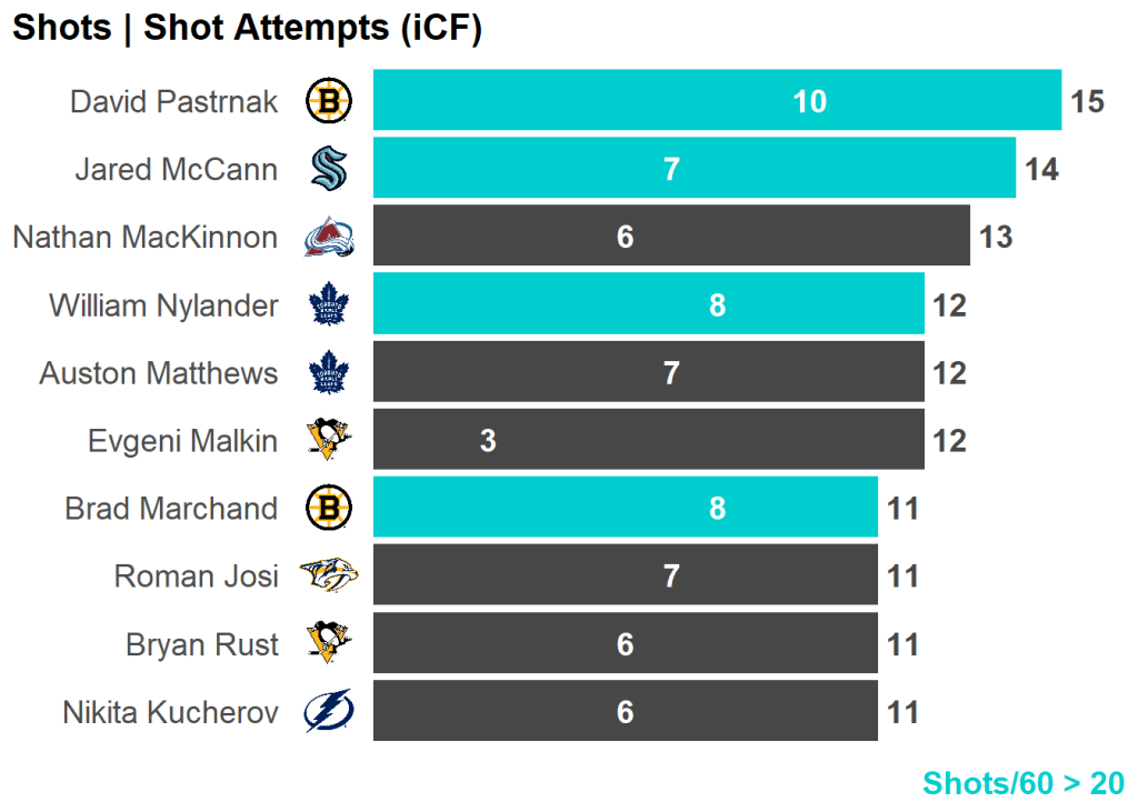 All skaters with 3+ Shots or 3+ Scoring Chances