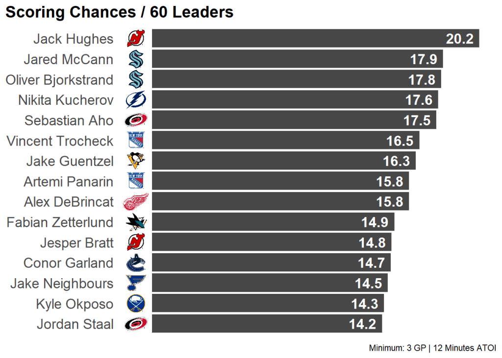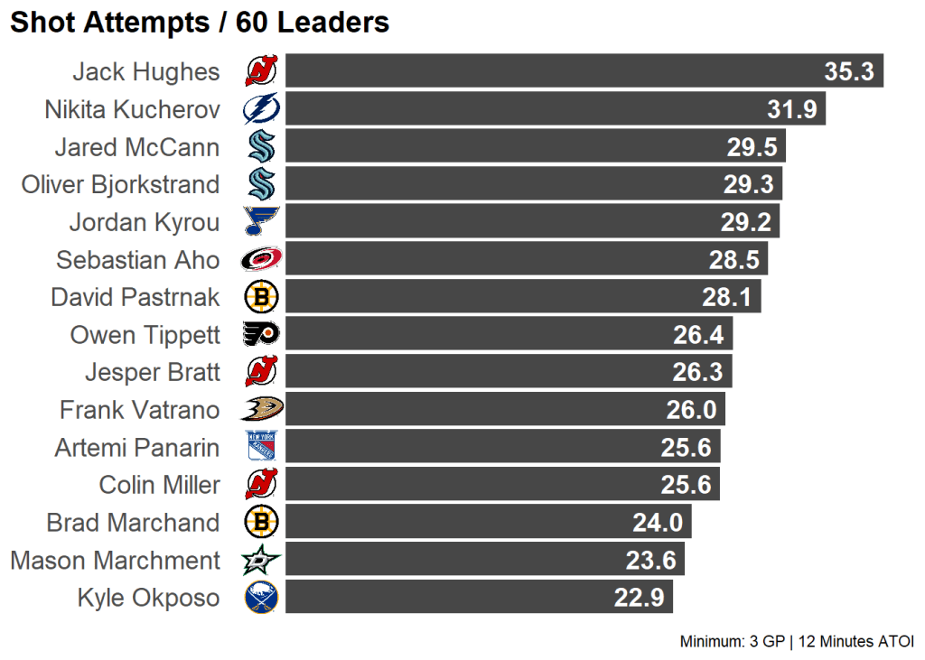 | Dawson Mercer | New Jersey Devils | 3 | 4 | 1.33 |