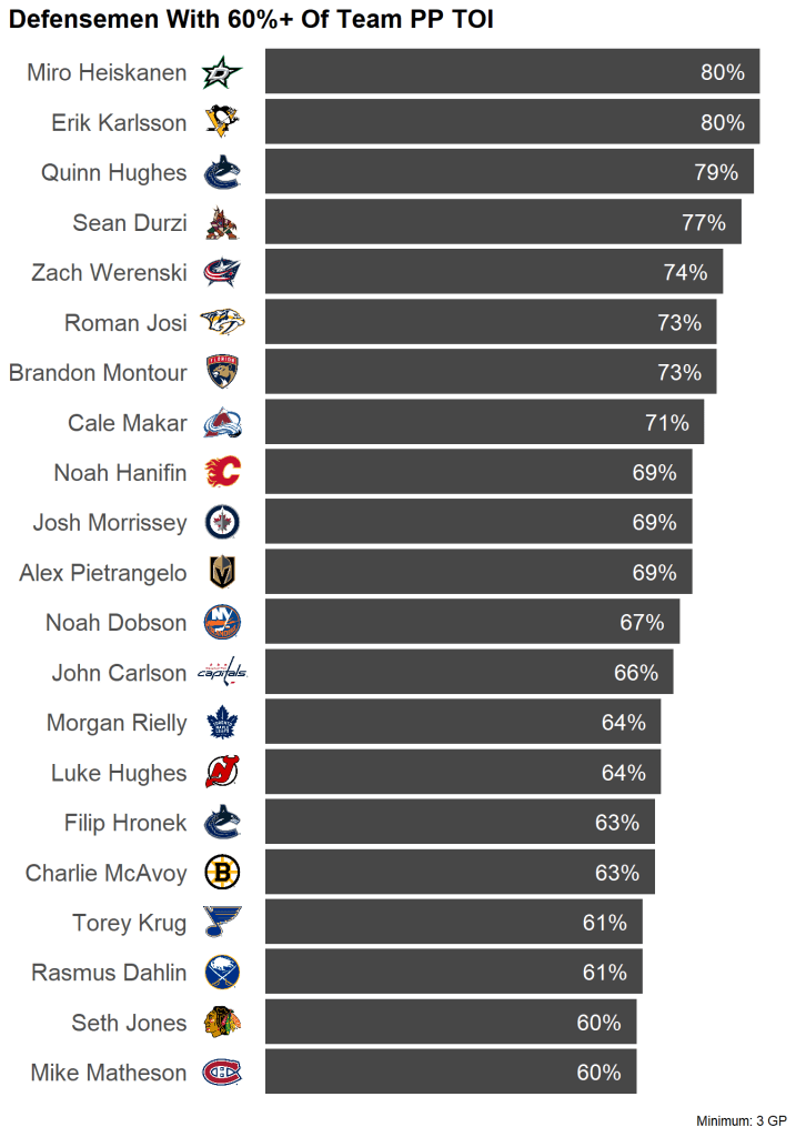 | Adam Fox | New York Rangers | 3 | 4 | 1.33 |