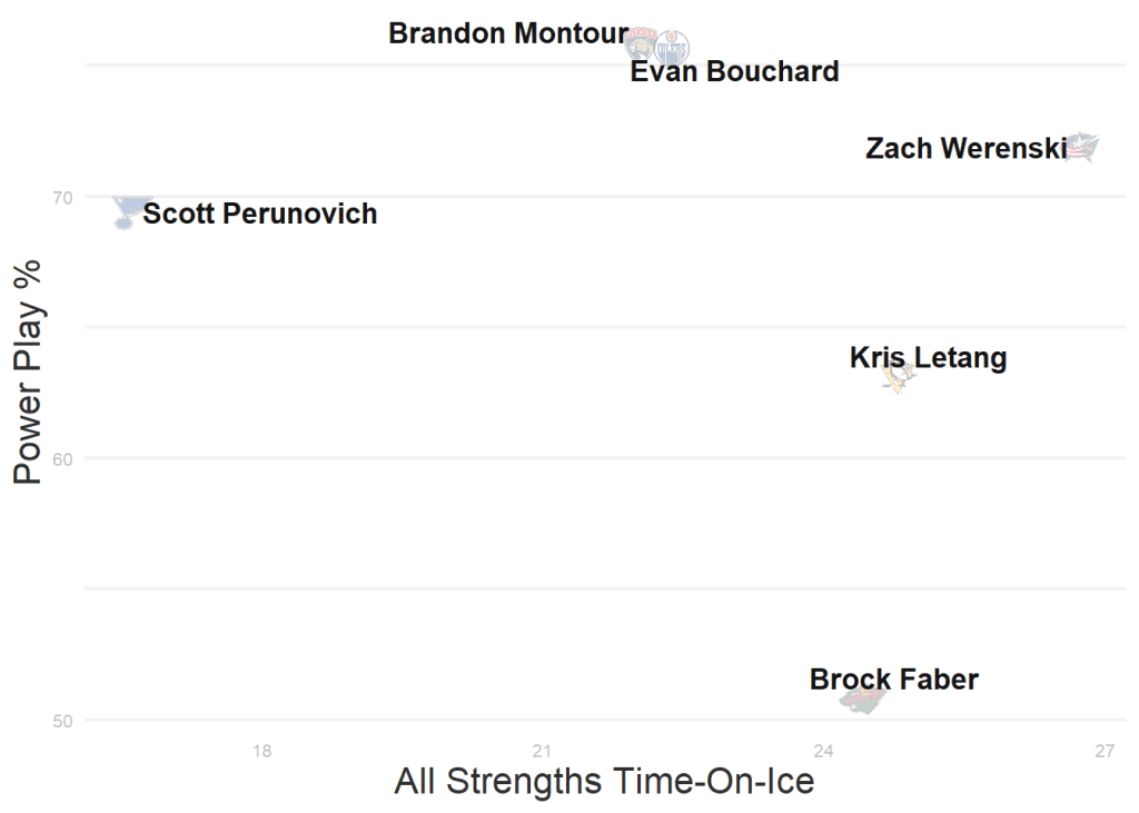 | Skater | Team | PP TOI | Percent | Last 3 GP | Difference |