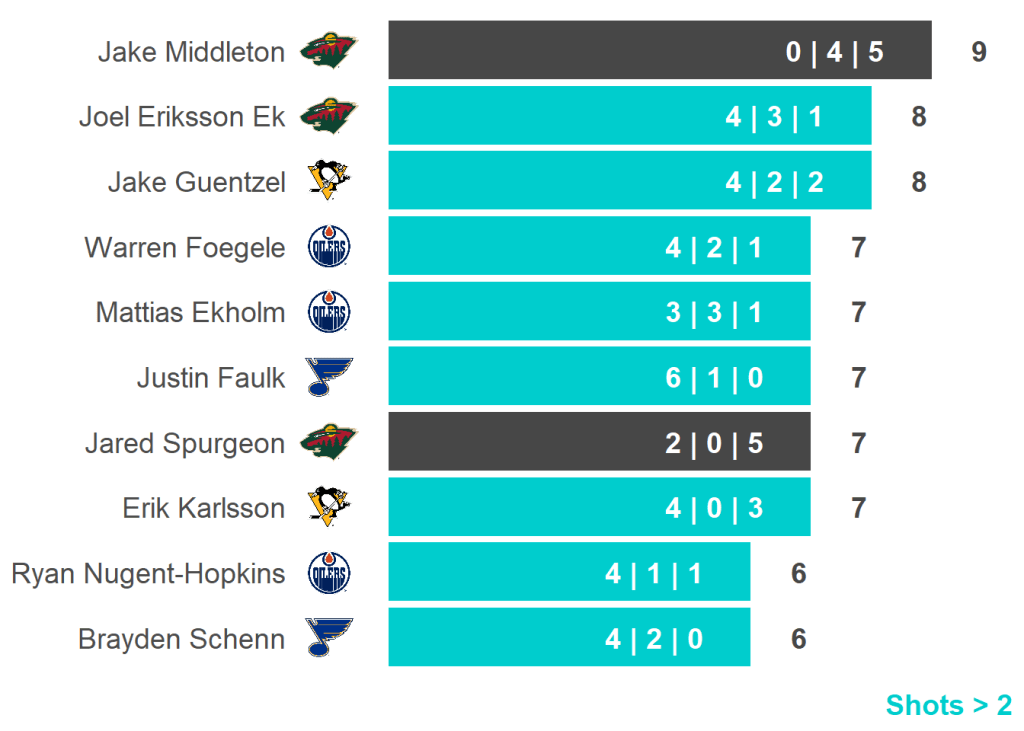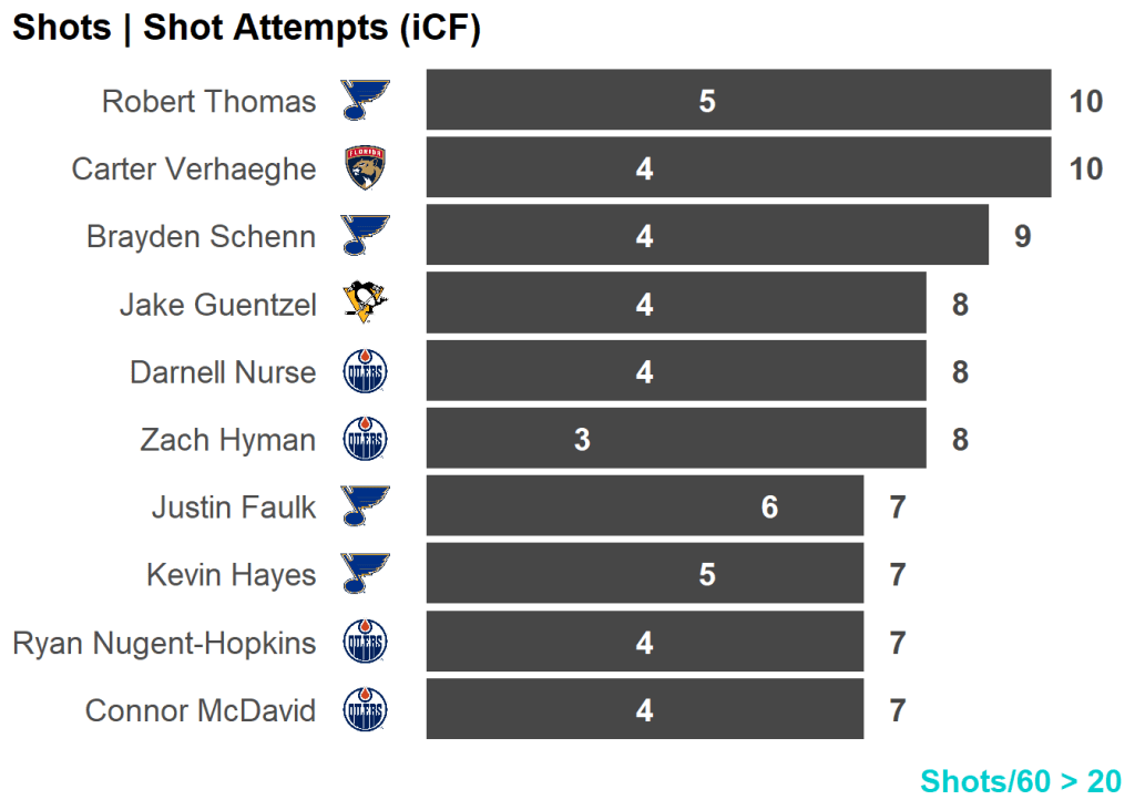 All skaters with 3+ Shots or 3+ Scoring Chances
