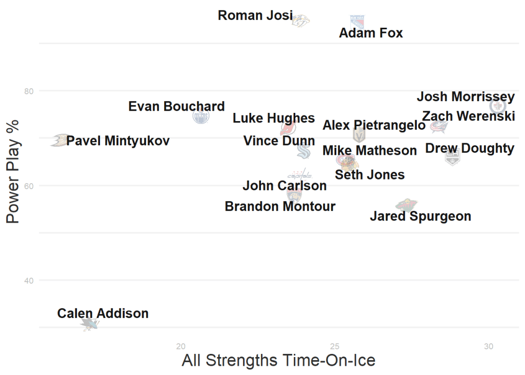 | Roman Josi | Nashville Predators | 02:08 | 94.8 | 70.1 | 24.7 |