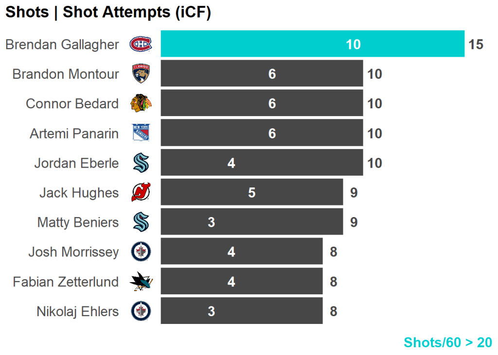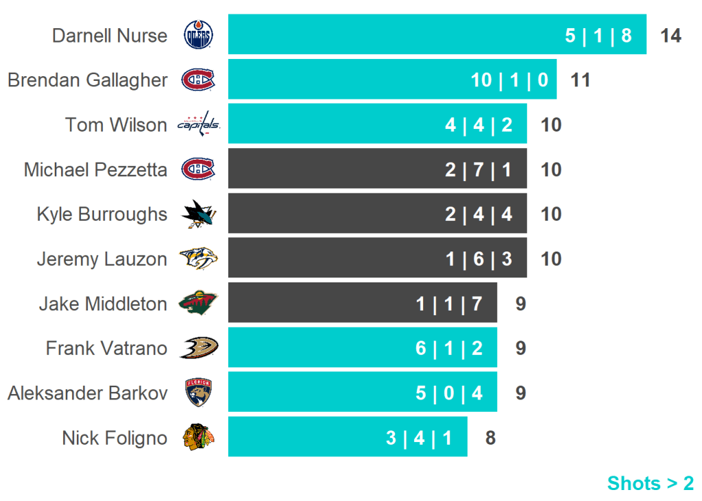 All skaters with 3+ Shots or 3+ Scoring Chances