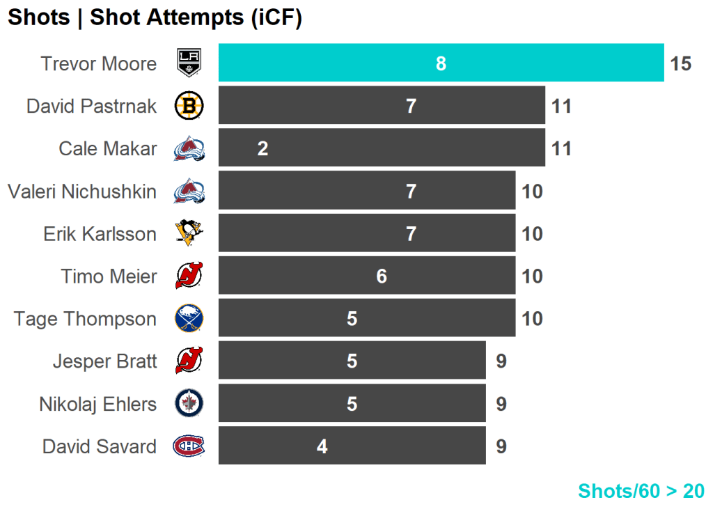 All skaters with 3+ Shots or 3+ Scoring Chances
