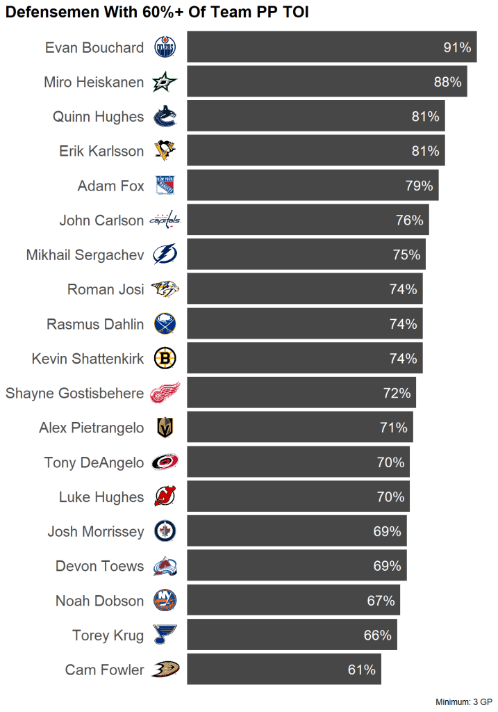 | Adam Fox | New York Rangers | 3 | 4 | 1.33 |