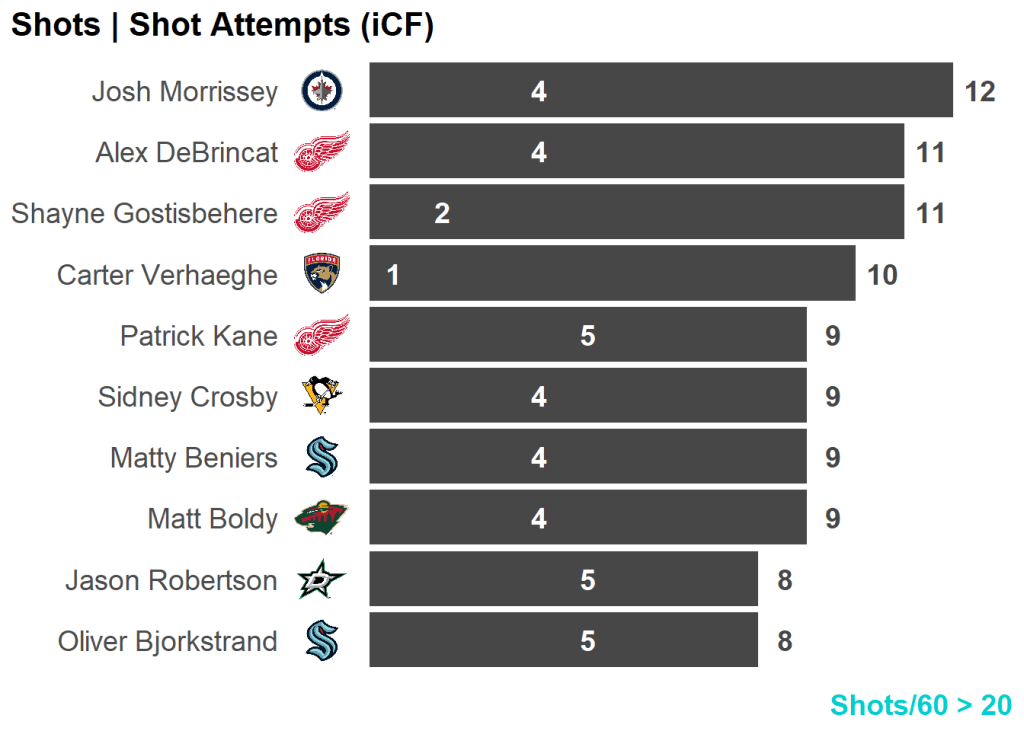 All skaters with 3+ Shots or 3+ Scoring Chances