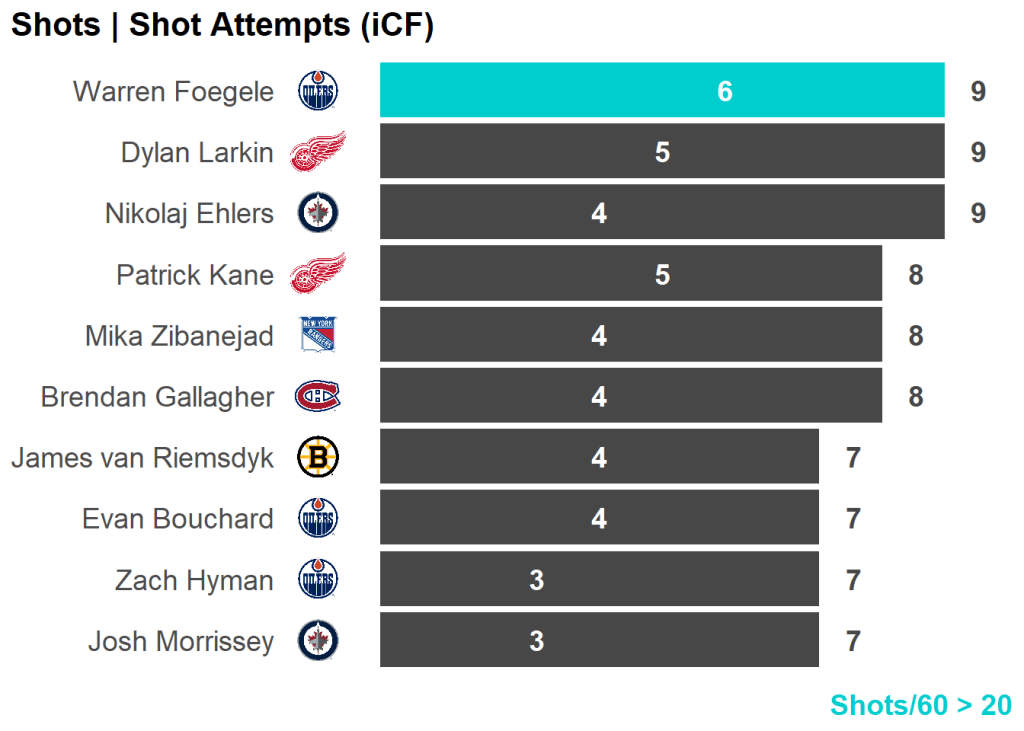 All skaters with 3+ Shots or 3+ Scoring Chances