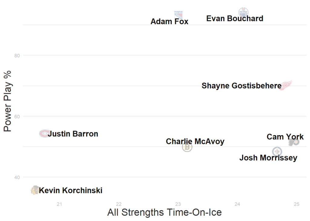 | Evan Bouchard | Edmonton Oilers | 4 | 9.96 | 0 | 0.20 |