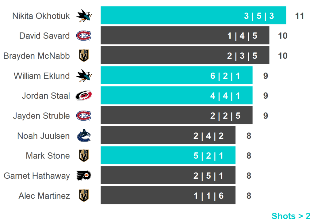 All skaters with 3+ Shots or 3+ Scoring Chances
