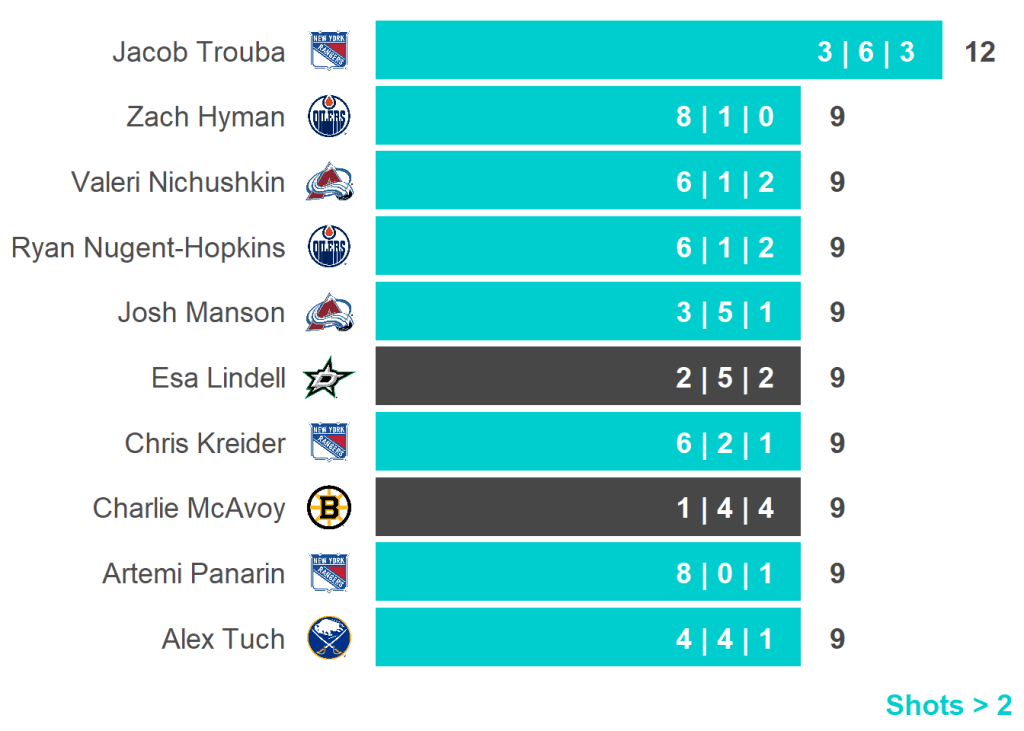 All skaters with 3+ Shots or 3+ Scoring Chances